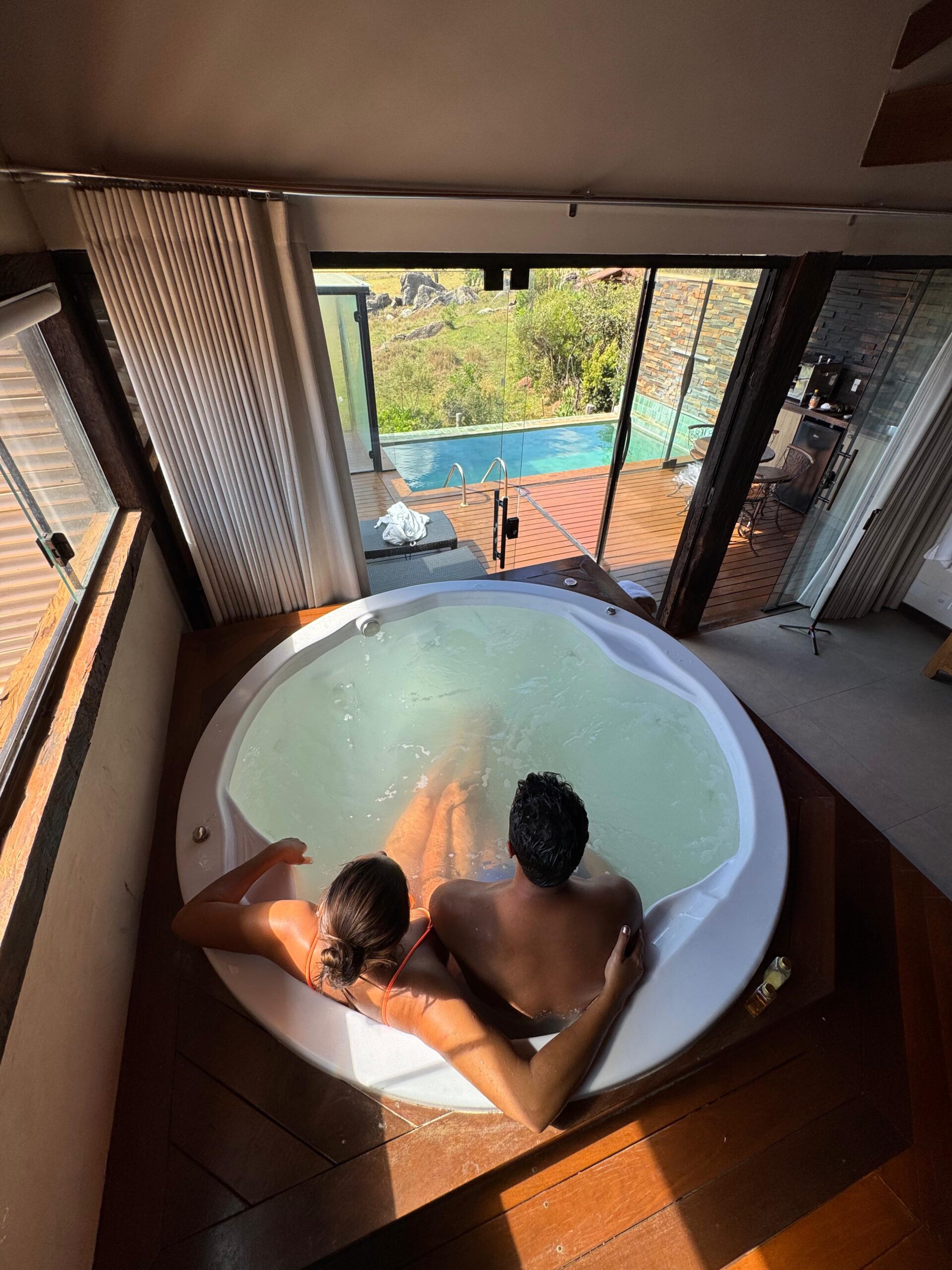Ficamos encantados com o charme e requinte da decoração! Uma experiência única apreciar a bela paisagem dentro da hidro, da piscina ou da sauna.